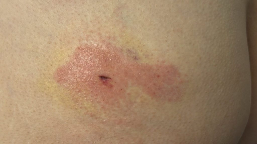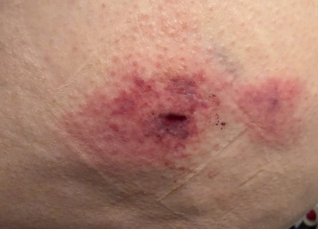 This is my wound on Wednesday morning after I had the procedure. It’s much bigger a slice than I’d expected but first time practitioners (I asked for the experiment) and while the treatment is safe across most vectors, I was a nervous immune compromised patient who prepared for the worse.