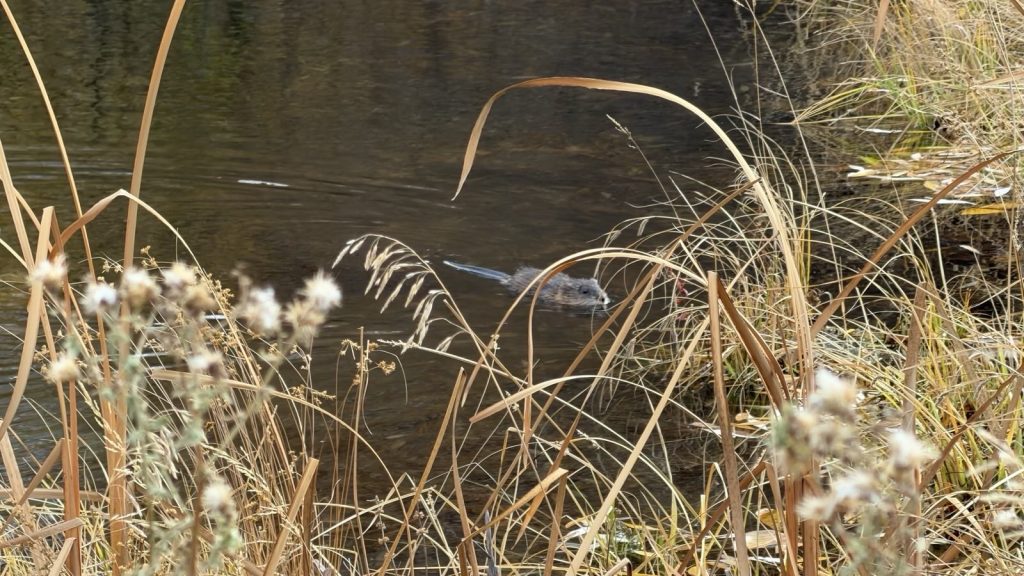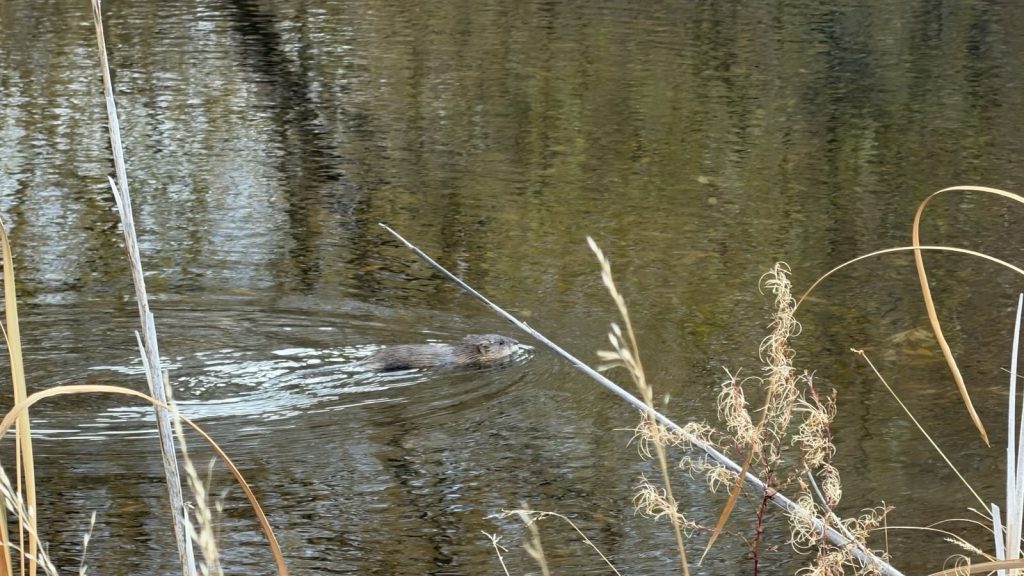 But clearly it can’t be doing too poorly, as we have found a new creature who has made a home with us. Over the fall, we have noticed that anytime we walked past the pond, a small mammal would splash and immediately disappear.