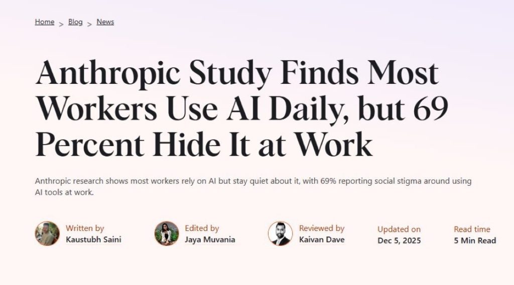 Anthropic released a study on the supposed stigma attached to using artificial intelligence at work. Humans are already reacting to artificial intelligence as if it were an existential threat. Except it’s mostly existentially freeing at this point. Anyone who has used commercial language models on healthcare can attest to that. So why are hiding its use?