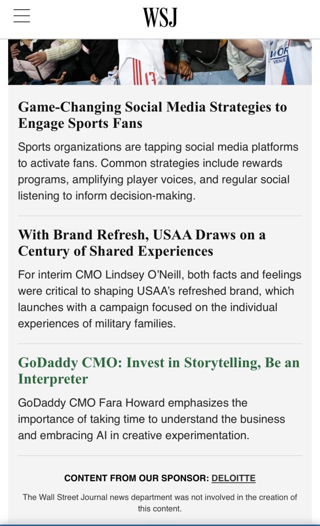 I am glad I opened it up though as I got to experience a pretty amusing bit of story telling inside the Wall Street Journals mobile application. A most unfortunate creative services choice to place storytelling sponsored content from consulting firm Deloitte.