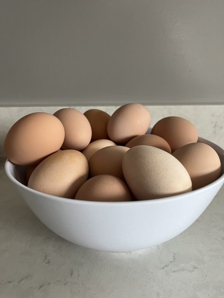A bowl of eggs from our hens